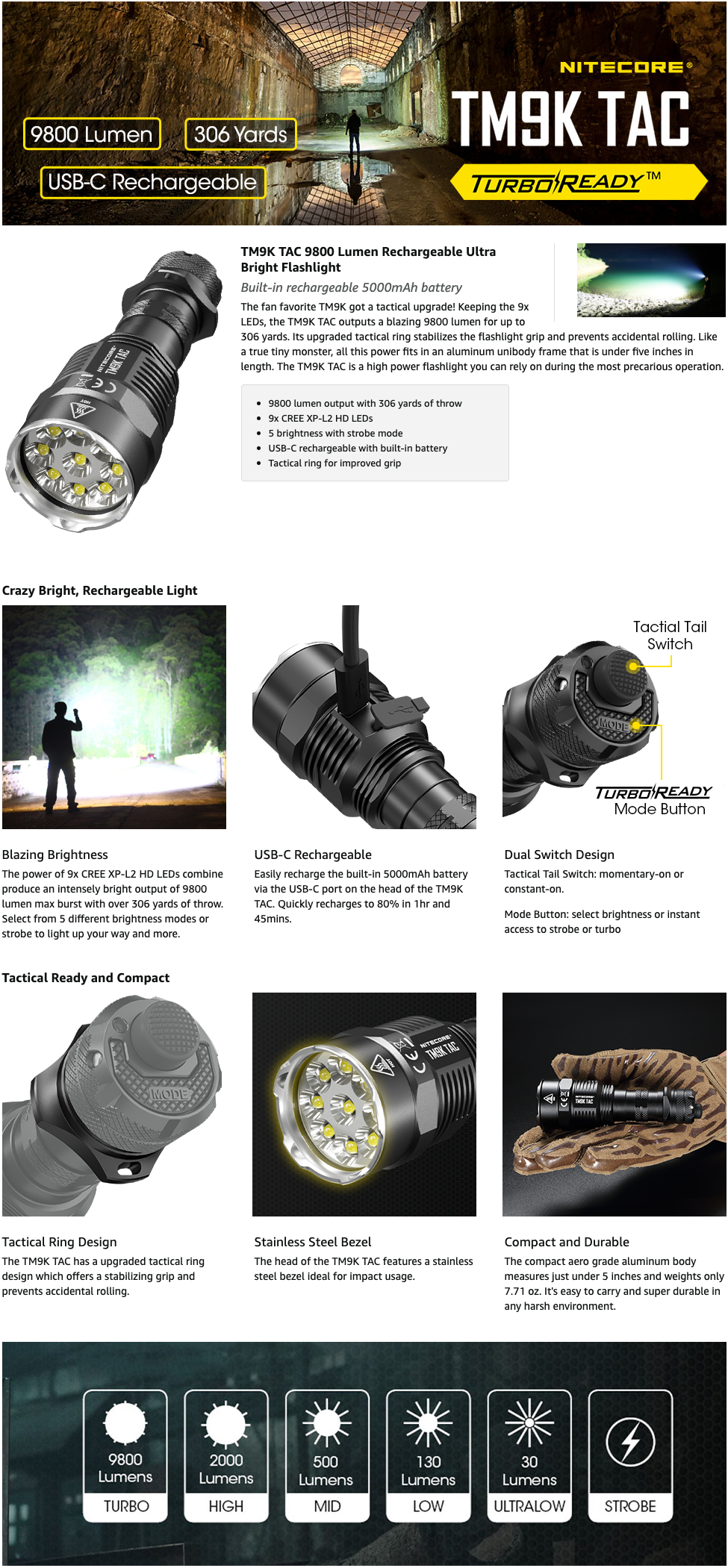 NITECORE TM9K TAC 9800 Lumen USB-C wiederaufladbare Taschenlampe
